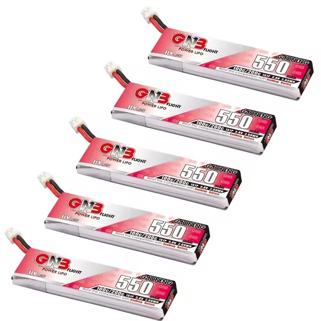 Аккумулятор GNB 550mAh обеспечивает стабильный выходной ток в течение всего разрядного цикла. А всё благодаря своей высокой непрерывной разрядной способности 100C. Это позволяет наслаждаться более длительным временем полета или активной игрой без прерывания.