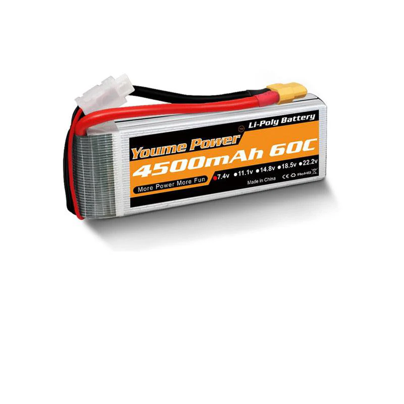Аккумулятор Youme Power 4500 mAh 60C — это надежность и качество. Он прошел множество тестов и проверок, что подтверждает его долговечность. Вы можете быть уверены, что он прослужит вам долго. Высокая плотность энергии позволяет использовать его в различных условиях.