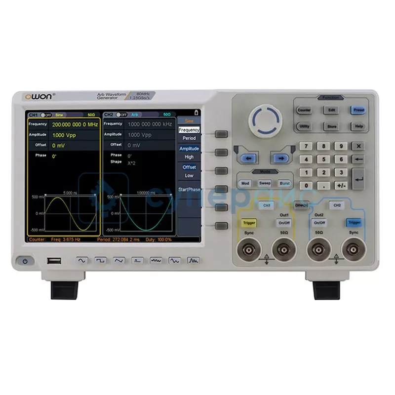 Произвольная форма | встроенная форма сигнала: 1 мкГц - 15 МГц; определяемая пользователем форма сигнала: 1 мкГц - 50 МГц |