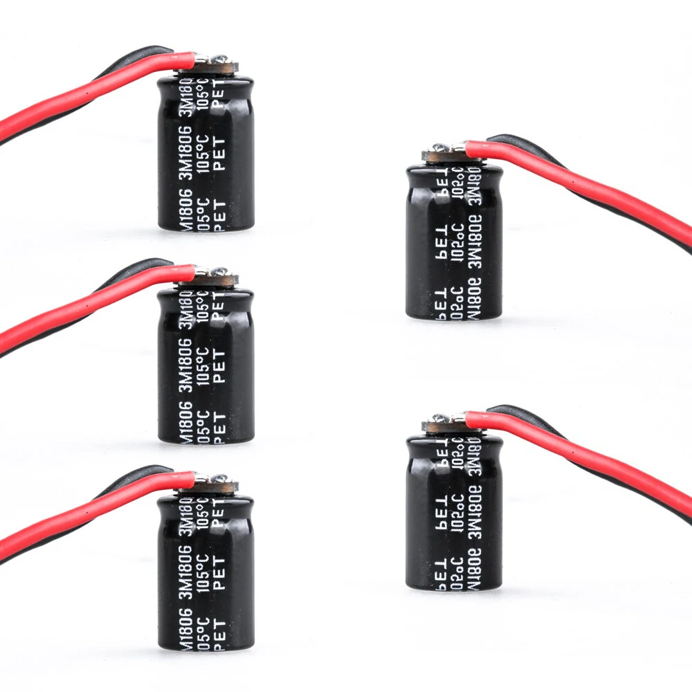 Конденсаторы Flywoo RUBICON предназначены для снижения помех по питанию. Они идеально подходят для регуляторов оборотов. В комплект входят пять японских конденсаторов с высокой надежностью. Каждый конденсатор имеет крышку в виде печатной платы (PCB). Это упрощает установку и соединение с другими компонентами.