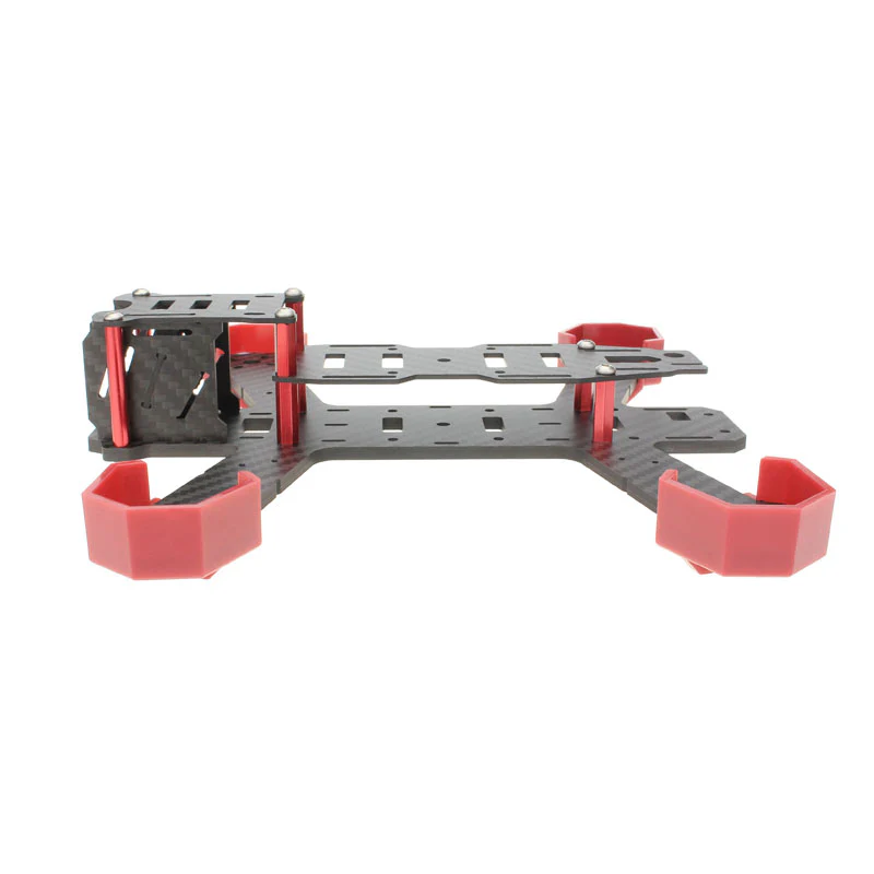 Рама имеет специальную защиту для двигателей, что уменьшает их повреждение при падениях и столкновениях. Инновационное крепление камеры обеспечивает вариативность наклона: 20 или 30 градусов. Это позволит пилотам выбирать лучший угол обзора. Также модель совместима с системой питания высшего уровня Emax. Кроме того, рама имеет стильный черно-красный дизайн, который позволит выделиться среди множества пилотов.