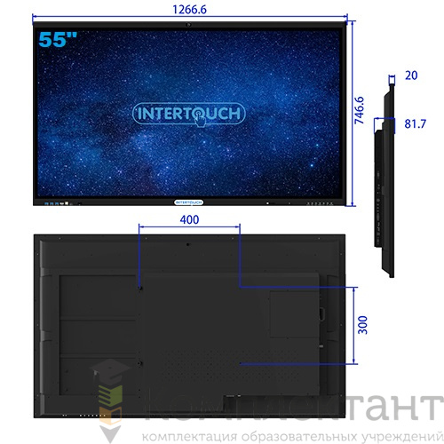 Интерактивная панель серия CS с диагональю 55 Дюймов с одним встроенным вычислительным блоком 8/512 Гб, закаленным стеклом, антибликовым покрытием, камерой 5 Мп, микрофонами 8 шт, датчиком освещенности.