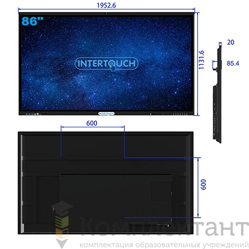 Интерактивная панель серия CS с диагональю 86 Дюймов с одним встроенным вычислительным блоком 8/512 Гб, закаленным стеклом, антибликовым покрытием, камерой 5 Мп, микрофонами 8 шт, датчиком освещенности.