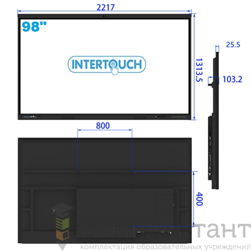 Интерактивная панель серия СТ с диагональю 98 Дюймов с двумя вычислительными блоками, закаленным стеклом, антибликовым покрытием, камерой 5 Мп, микрофонами 8 шт, датчиком освещенности.