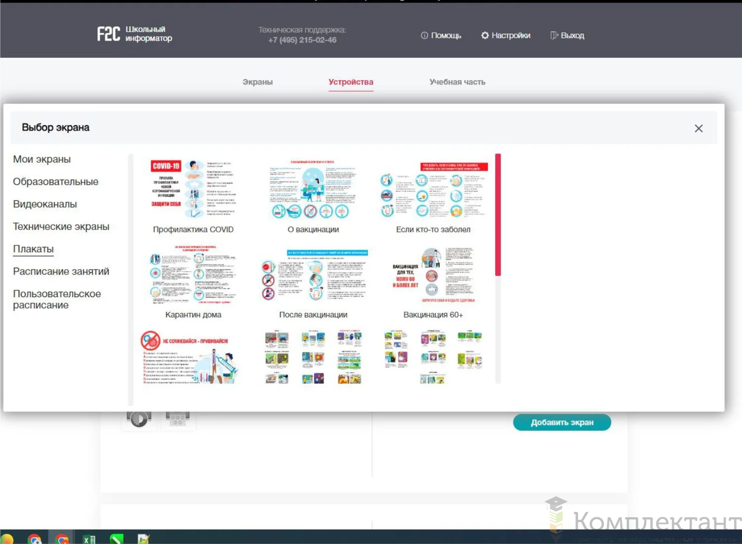 Для упрощения работы с редактором, в личном кабинете пользователя загружен предустановленный контент: он позволяет отображать информацию, которая пригодится в любом учебном заведении – например, экран посвященный ЕГЭ.