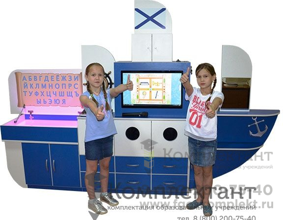 Многофункциональный интерактивный комплекс «Шхуна» подойдет для установки в детсадах, начальных школах, детских центрах и комнатах торговых и развлекательных комплексов.