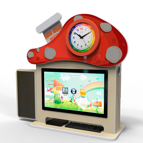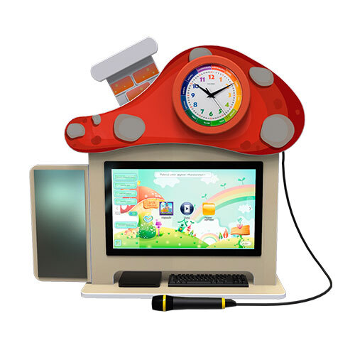 Настольный логопедический моноблок «Грибной домик» - это интерактивное оборудование для устранения дефектов речи у детей школьного и дошкольного возраста. Выполнен в виде домика с грибной крышей, что помогает специалисту быстро в игровой форме, вовлечь ребенка в обучающий процесс. Предназначен для эксплуатации в логопедических кабинетах, детских садах, школах, специализированных образовательных центрах. Выпускается российской компанией «АВ Комплекс», включает программное обеспечение собственной разработки «PROTECT KIDS», внесенное в Единый реестр российских программ для ЭВМ, согласно приказу Минкомсвязи РФ № 634 от 30.11.20г. Главным преимуществом логопедического моноблока «Грибной домик» выступает комбинация корпуса, компьютера и программного обеспечения, которые объединены в единую платформу с большим функционалом. Моноблок исполнен в виде фактурного корпуса из ЛДСП-МДФ материала, в который вмонтирован 24 дюймовый сенсорный экран, с разрешением 1920х1080 точек и поддержкой до 10 одновременных касаний. За работу комплекса отвечает компьютер на базе: ЦП Intel Core i3-7100U, ОЗУ 8 Gb DDR-4-1600, а также SSD накопителя 120 Gb. Система управляется OS Windows 10. Комплекс «Грибной домик» поставляется с предустановленным ПО, в которое входят десятки интерактивных программ, методических рекомендаций, а также больше 500 карточек для автоматизации и дифференциации звуков. Характеристики