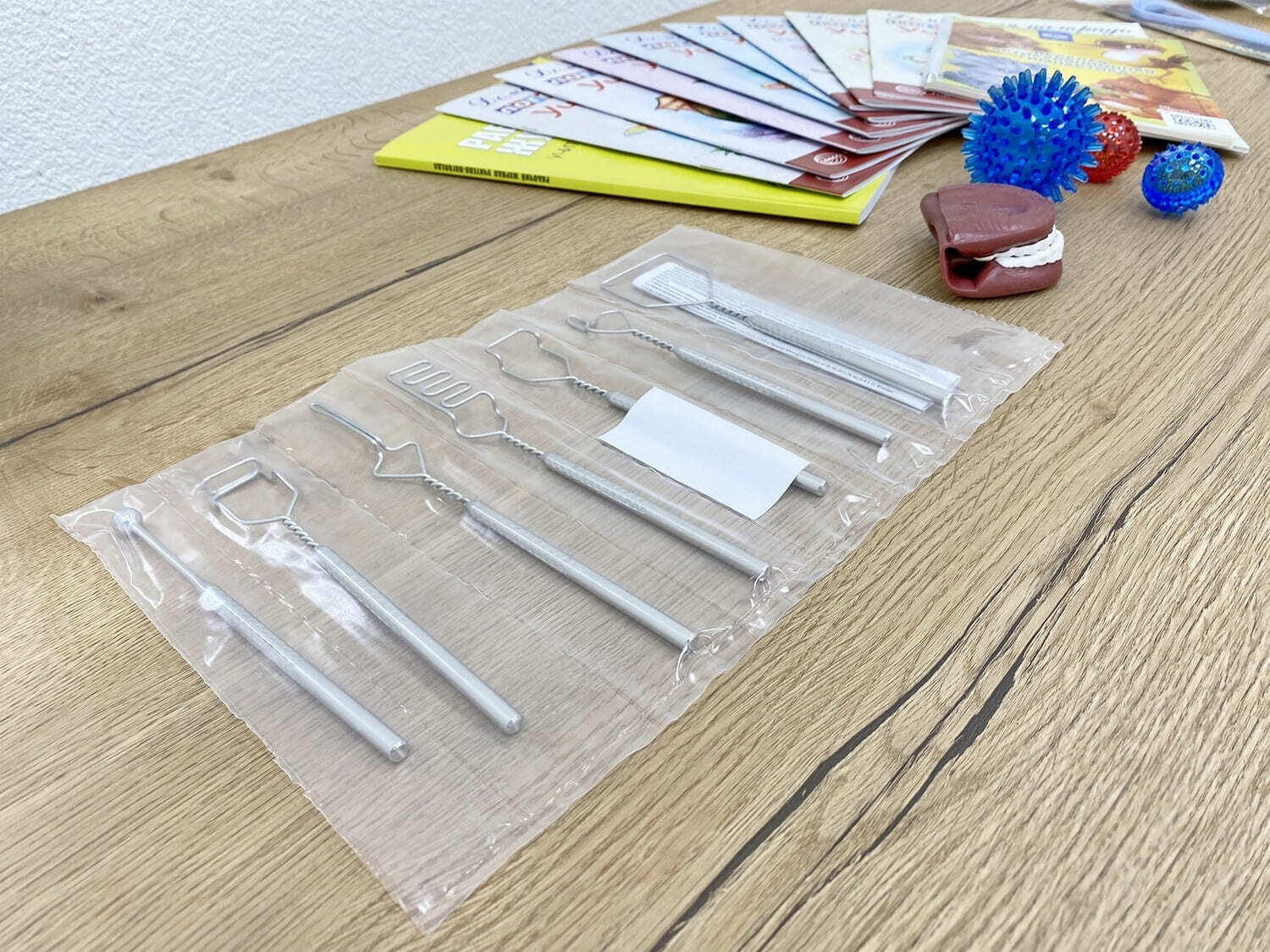 Обширный комплект упражнений (оборудование для которых поставляется в комплекте) позволяет развить физиологическое и речевое дыхание, мелкую моторику, память, звукопроизношение, логическое мышление, внимание, артикуляцию. Комплект дополняет логопедическое программное обеспечение, которое дает возможность специалисту проводить занятия по артикуляционной гимнастики, воздушной струе, фиксировать успеваемость ребенка. Высота стола: 75 см. Цвет: белый ясень Комплектация