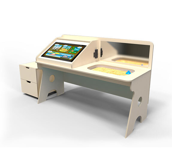 Стол психолога-дефектолога «AVK Старт» - это профессиональная интерактивная мебель для работы с детьми, с набором дополнительных инструментов. Он существенно расширяет рамки взаимодействия специалиста с ребенком, повышая эффективность диагностического и образовательного процесса. Комплект предназначен для эксплуатации в учебных и медицинских учреждениях различного уровня, в том числе: дошкольных учреждениях, школах, детских поликлиниках, специализированных учебных центрах и т.д. Главной особенностью стола психолога-дефектолога «AVK Старт» являются широчайшие возможности для работы с детьми различных возрастных групп, имеющих психологические и лингвистические дефекты любой сложности. В системе предустановлено ПО, позволяющее проводить углубленную диагностику персональных свойств внимания у детей младшего и старшего возраста. Конструкция стола и программное обеспечение, разрабатывались совместно с опытными детскими психологами-дефектологами, что позволило учесть даже незначительные нюансы взаимодействия с ребенком, обеспечив повышенный комфорт и эффективность работы с оборудованием. Грамотное применение интерактивной системы и дидактических материалов, позволяет решить целый комплекс психических и психологических проблем, которые может испытывать ребенок в своем возрасте, в том числе: интенсивность и переключаемость внимания, наличие дефицита внимания, нарушений формирования личности и еще десятки важных показателей. Комплект работает под управлением лицензионной ОС Microsoft Windows 10 и ПО собственной разработки. Они внесены в Единый реестр российских программ для электронных вычислительных машин (Приказ Минкомсвязи России от 30.11.2020 №634). Модель «AVK Старт» выполнена в виде учебного стола (парты) из экологически безопасного ЛДСП, оснащена дополнительными инструментами для работы психолога-дефектолога. Имеет вмонтированную интерактивную систему. Корпус разделен на две рабочих зоны: одна с сенсорным дисплеем интерактивной системы, вторая - место для занятий с кварцевым песком (может трансформироваться в обычное письменное место). Также предусмотрена небольшая тумба с двумя выдвижными ящиками для хранения вещей. Интерактивная система стола работает на основе компьютера: Мощности ПК достаточно для комфортного использования системы, без «подвисаний» или длительных загрузок. Также есть возможность установки дополнительного софта или обновления имеющегося. Помимо интерактивной системы, стол психолога-дефектолога, комплектуется пакетом методических пособий психолога, пакетом методических рекомендаций по песочной терапии, а также комплектом деревянных развеивающих тренажеров. Наличие сотен предустановленных программ, позволяет специалисту проводить качественную диагностику и коррекцию проблем различных типов и сложности. Специализированный программный продукт «Protect Kids» для предотвращения негативного воздействия сети Интернет и компьютера на ребенка. Программа «РАСкройся Миру» предназначена для разностороннего развития детей дошкольного и младшего школьного возраста с РАС. Комплекс программ «ЛогоСтрана» предназначен для проведения коррекционных логопедических занятий педагога с детьми.