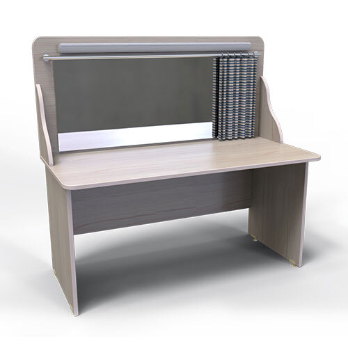 Помочь в развитии речи, устранении дефектов, улучшении моторки рук, зрительно-моторной координации, формировании правильного дыхания, расширения словарного запаса способен мебельный стол логопеда производства компании АВ Комплекс. Он востребован в школах, детских садах, развивающих центрах с коррекционной логопедической направленностью. Декоративный корпус оборудования изготавливается из ламинированной ДСП, а его кромка - из ПВХ. Цвет подбирается по желанию заказчика. Готовый стол органично вписывается в кабинет логопеда или психолога. Работать за ним возможно, как с одним ребенком, так и с двумя. В комплектацию входит уже установленное зеркало, лампа для его подсветки, ширма. Размеры мебели составляют 1080 х 1200 х 450 мм, а вес не превышает 40 кг. На столешнице достаточно места, чтобы хранить дополнительные материалы для урока. Характеристики