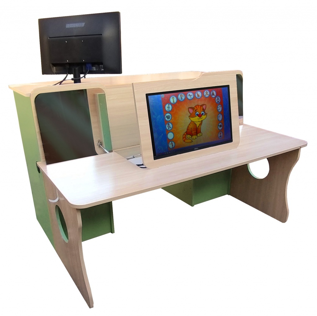 Стол развивающий интерактивный, представляет собой конструкцию, изготовленную из ЛДСП, цвет: «Клен» (по выбору заказчика: «Бук», «Клен», «Дуб сонома», комбинированный), толщиной 16 мм, с кромками ПВХ2 мм. В комплект поставки включен программно-дидактический комплекс для логопеда-дефектолога. Комплекс охватывает следующие темы: звукопроизношение (интерактивная артикуляционная гимнастика, дыхание, воздушная струя, звукоподражание, звукопроизношение), фонематическое восприятие (фонематический слух, неречевой слух, слоговая структура слова), лексика-грамматические категории (грамматический строй, лексика, связная речь), общее развитие (моторика, подготовка к чтению), программа для создания пособий (В программе более 600 изображений, из которых вы сделаете пособия на любую тему: постановка «трудных» звуков, изучение лексических тем, развитие связной речи, звука-буквенного анализа и других навыков. Картинки высокого качества и не «расплываются» при увеличении и печати. Изображения в едином художественном стиле, поэтому готовые пособия выглядят профессионально. В программе удобно работать: изображения сгруппированы по разделам, готовые сюжеты можно сохранить и распечатать). Возможно добавить эксклюзивный программный комплекс, с интерактивной сенсорной системой ввода, которая подойдет для детей с РАС. Для заказа доступна замена конструкции из ЛДСП на металлическую, с автоматической регулировкой высоты столешницы как для ученика, так и для преподавателя. В комплект можно включить ортопедическое «растущее» кресло для ребенка, а также удобное кресло для преподавателя.