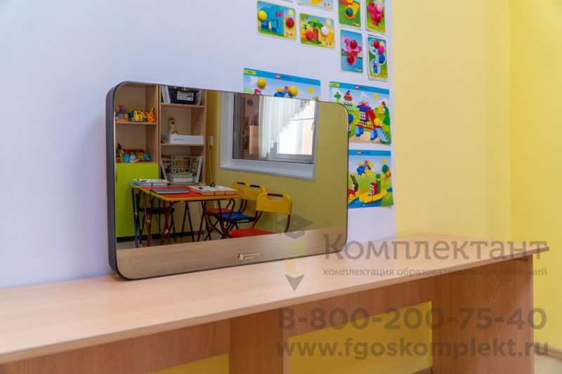 Преимущество №8.Зеркало совмещает в себе компьютер с выходом в Интернет и программным обеспечением, конструктор и хранилище для занятий и домашнего задания, видеокамеру для фиксации занятий, журнал для отслеживания динамики ребёнка, органайзер рабочего пространства логопеда. Нет необходимости в покупке компьютера и дидактических материалов для каждого логопеда, работающего в ДОО.Все материалы для занятий создаются и хранятся в Умном зеркале, что создаёт функциональное и свободное пространство.