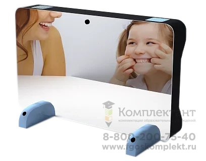 Умное зерка ло ArtikMe - это профессиональный инструмент логопеда для коррекционной работы с детьми, имеющими проблемы в речевом, когнитивном и эмоциональном развитии. Ребёнок видит одновременно своё отражение и волшебный мир, в котором живут сказочные персонажи. Они сопровождают ребёнка по зеркальному миру, дают задания и помогают их выполнить. Для работы необходим ноутбук.