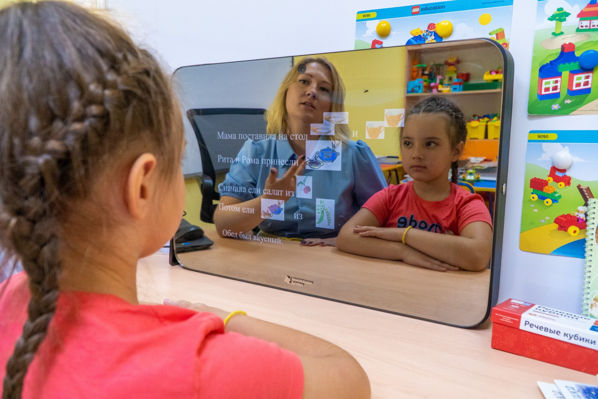 Профессиональный инструмент для логопеда. Предназначен для проведения коррекционных занятий в ДОО, школах и частных логопедических кабинетах. Ребёнок видит одновременно своё отражение и волшебный мир, в котором живут сказочные персонажи. Они сопровождают ребёнка по зеркальному миру, дают задания и помогают их выполнить. Умное зеркало Artikme широко используется в логопедии. Оно предназначено для детей с целью устранения нарушений речи. Суть работы состоит в том, что ребёнок видит не только своё зеркальное отражение. Он попадает в сказку с волшебными героями, которые помогают ему выполнять артикуляционные, звуковые упражнения, правильно произносить звуки и следить за дыханием. Разработаны с целью коррекции и устранения дефектов речи. Развивают артикуляцию, произношение звуков, закрепляют навыки звукового анализа, обогащают лексические темы. Подходят для работы с детьми от 4 до 10 лет. Конструктор даёт инструменты для создания интерактивных занятий на любые лексические темы. Создавайте занятия, отталкиваясь от заключения в речевой карте ребёнка и от его индивидуальных особенностей.