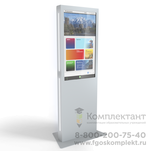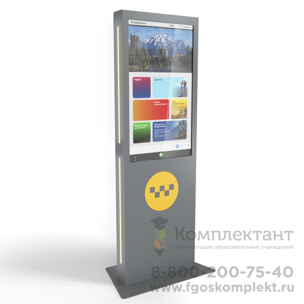 Оборудование лицензировано и включено в Реестр российской промышленной продукции Минпромторг. Универсальный киоск исполнен в надежном антивандальном корпусе. Классическая форма и торцевая подсветка привлекают внимание и вписываются в любой интерьер. Яркий DIGITAL экран транслирует контент о товарах или услугах.