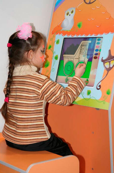 Любой ребенок от 2-х лет может самостоятельно управлять заданиями и играть, используя сенсорный мультимедийный экран.