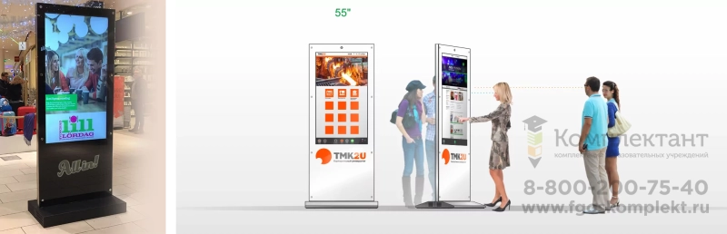 LR Ultra SK — ультратонкая двусторонняя сенсорная стойка с диагональю экрана 55 дюймов. Лицевая часть выполнена из каленого стекла и может брендироваться по вашему фирменному стилю. В основании размещён современный и мощный компьютер Intel.