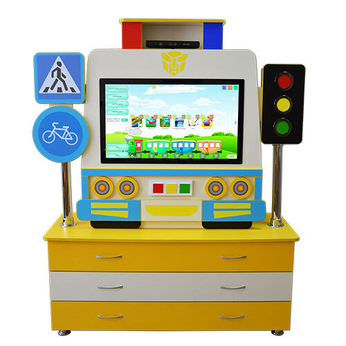 Профессиональный интерактивный развивающий комплекс «AVKompleks Автобот» поможет ребенку изучить и усвоить правила дорожного движения и безопасности на дологе. Оборудование включает дидактические материалы, наглядные обучающие пособия, видеоролики по освоению ПДД, тестированию и проведению занятий в игровой развлекательной форме. Во время уроков ребята обучаются правилам поведения на дороге, в общественном транспорте, машине. Кроме того, для наглядности устройство оснащено знаками дорожного движения и светофором. Для хранения материалов предусмотрены выдвижные ящики.