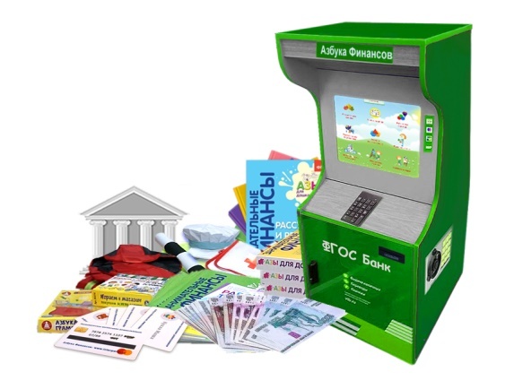 В отличие от мобильных версий комплекса "Азбука Финансов", данная модель поставляется с условно-мобильным Банкоматом, который оснащен и высокопроизводительным компьютером, и монитором. Это не только добавляет реалистичности играм и занятиям по финансовой грамотности, но и позволяет автономно использовать комплекс в целом, даже без подключения к интерактивной доске, используя встроенный монитор Банкомата. Эта модель, как и все не- мобильные модели комплексов "Азбуки Финансов", оснащена играми и заданиями по основам финансовой грамотности и дополнительно - более чем 4500 учебными играми и заданиями «Волшебный Экран» по всех разделам ФОП. Программное обеспечение комплекса разработано в соответствии с программой Министерства образования и содержит более 60 ярких интерактивных учебных заданий на тему экономики и финансовой грамотности, в соответствии с разделами программы: Задания имеют различные уровни сложности и формируются автоматически, с низкой вероятностью повторений Интерактивный банкомат - действующая модель настоящего банкомата, который позволяет авторизоваться по карте пользователя, вносить и снимать наличные, совершать различные платежные операции. Банкомат обменивается данными с модулем «Банк» при его наличии. В отличие от мобильной версии, эта модель Банкомата оснащена высокопроизводительным компьютером и монитором. Это не только добавляет реалистичности играм, но и позволяет использовать комплекс автономно, даже без подключения к интерактивной доске. Интерактивные возможности оборудования: Комплексы «Азбука финансов» комплектуются материалами, которые позволят педагогу быстро освоить работу с оборудованием и программами. В комплекте: Программное обеспечение комплекса «Азбука финансов»
