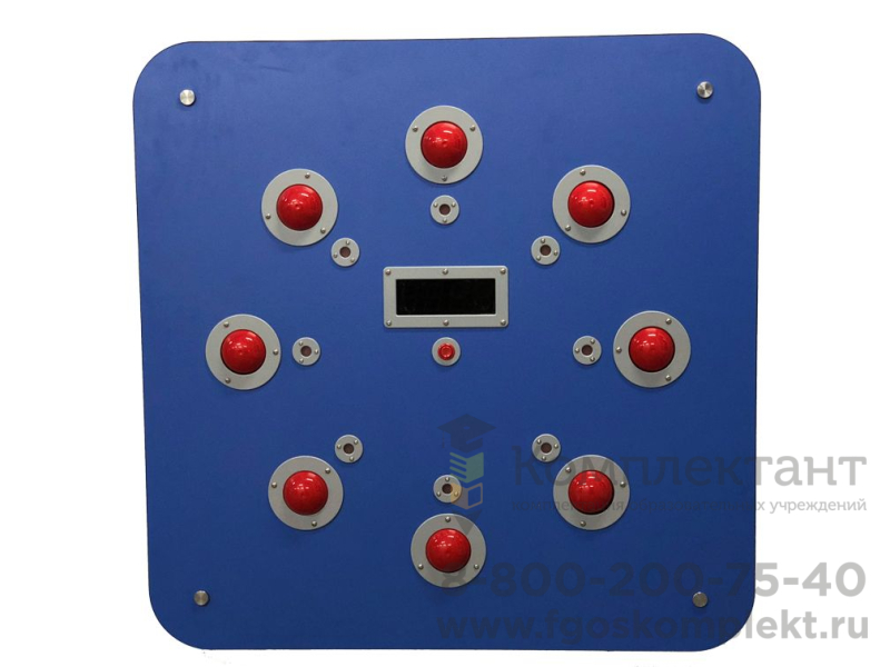Экспонат 2 предназначен для определения скорости реакции на раздражающее воздействие (световые сигналы). Экспериментатор выполняет визуально-моторный тест (нажимает засвечнныке шарики на время), тем самым измеряет скорость своей реакции.
