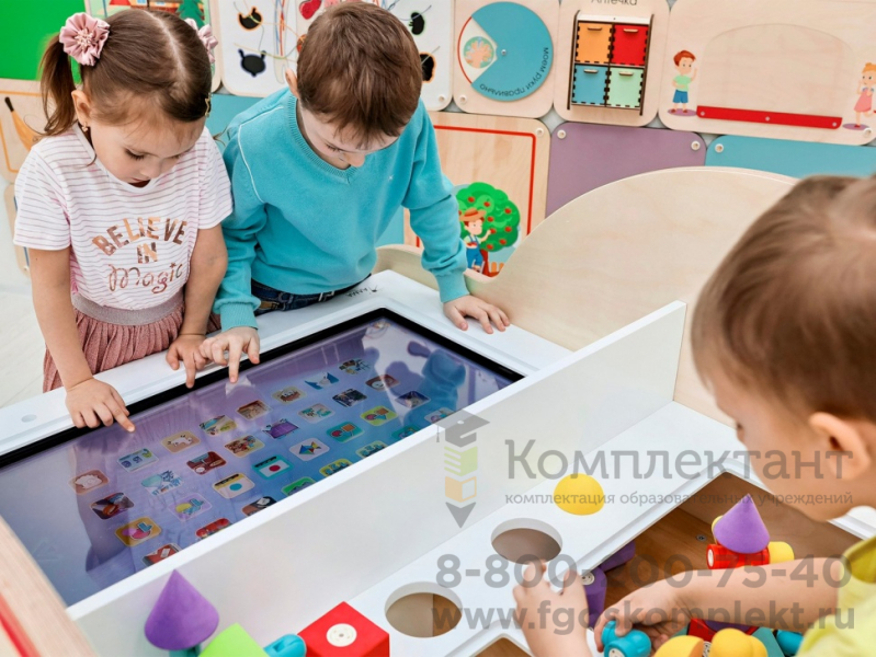 Присутствует функция разделения интерактивного экрана на 2 игровых сектора, что делает возможным задействовать как можно больше детей для групповой работы.