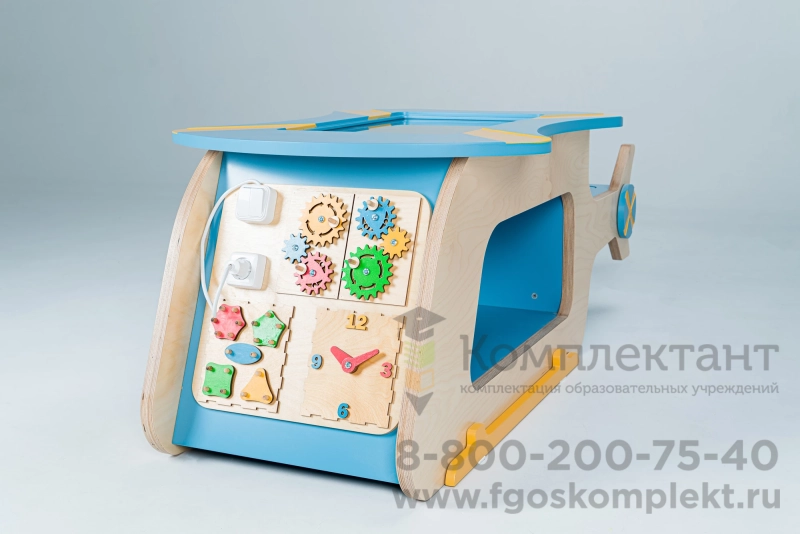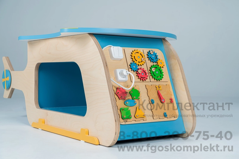 Методический интерактивный комплекс «Вертолет» представляет собой многофункциональное игровое пространство с тремя зонами. Это конструирование, занятия на интерактивной панели и бизиборд.
