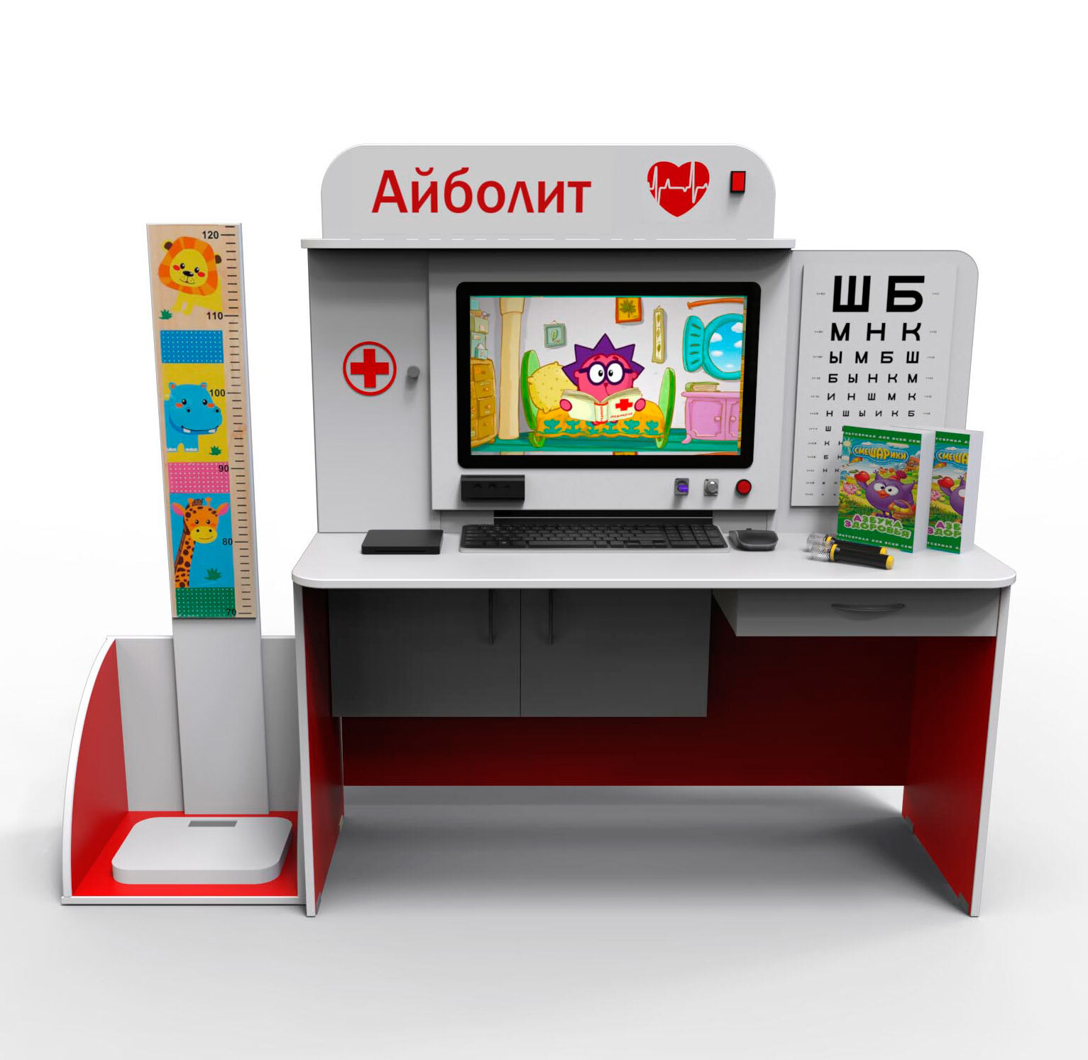 Мультимедийный интерактивный развивающий «Маленький медик» способствует развитию речи, мелкой моторики рук, коммуникативных и творческих навыков, вербальной зрительной памяти, словарного запаса, вниманию, словесно-логическому мышлению. Оборудование успешно используется в детских садах, школах, интернатах, группах развития и во многих других образовательных учреждениях. Мультимедийный стол выполнен из безопасного материала ЛДСП. Он оснащен интерактивным монитором размером в 25" дюймов с технологией Multi Touch System, которая поддерживает до 10 касаний. В комплектацию входят акустика, современный компьютер, радиосистема на 2 микрофона, клавиатура, мышь, кабели HDMI, Usb 2.0. Помимо этого, в наличии рециркулятор, ростометр, весы и таблица Сивцева, чтобы проверять зрение у детей. Для складирования разных дидактических материалов имеется небольшой ящик и шкафчик. В ПК встроены диск SSD на 120 Гб, видеокарта Intel HD Graphics. Функционирует «МедКомплекс» на базе ОС Windows 10, а также интерактивного программного обеспечения. Специализированный программный продукт «Protect Kids» для предотвращения негативного воздействия сети Интернет и компьютера на ребенка. Программа «РАСкройся Миру» предназначена для разностороннего развития детей дошкольного и младшего школьного возраста с РАС. Комплекс программ «ЛогоСтрана» предназначен для проведения коррекционных логопедических занятий педагога с детьми. Характеристики
