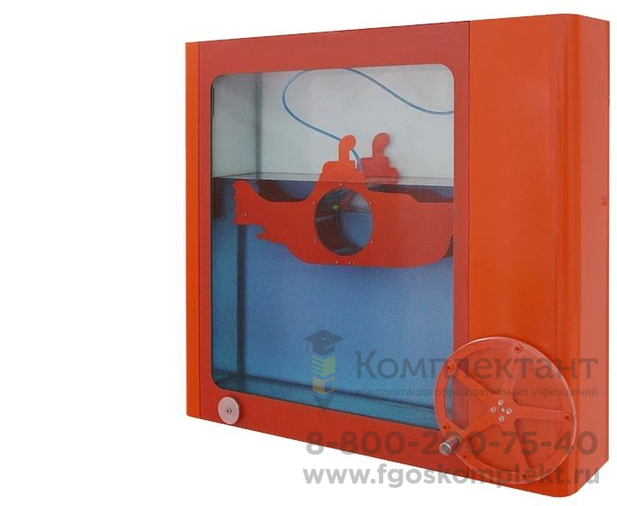 Принцип действия: ученик с помощью рычага управления погружает и поднимает модель подводного аппарата, при этом он видит как наполняется и опустошается балластная цистерна и как при этом движется подлодка.