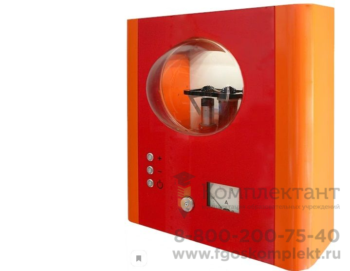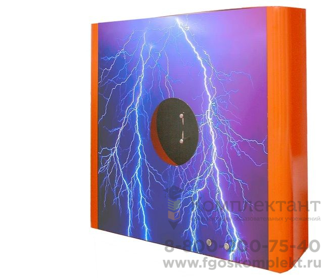 Принцип действия: с помощью кнопки ученик запускает искровой разряд и наблюдает образование молнии, треск от разряда (имитация грома).