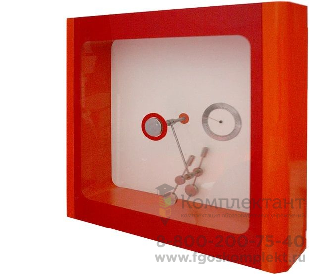 Принцип действия: ученик приводит в движение маятник модели и наблюдает за его хаотичным движением, скоростью вращения и направлением. При этом циферблат без шкалы нумерации позволяет воспринимать упорядоченность и хаотичность как во времени, так и без него.