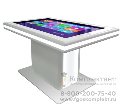 Стол оснащен сенсорным дисплеем диагональю 32 дюйма, Full HD, производительным ПК, Wi-Fi адаптером, панелью подключения с электронным старт-ключом, портом LAN-кабеля, USB, AUX, HDMI.