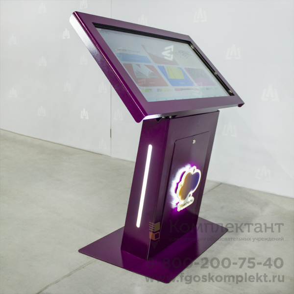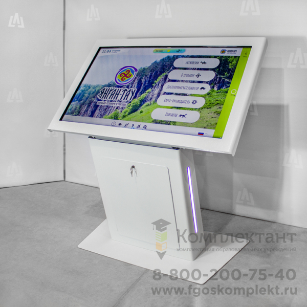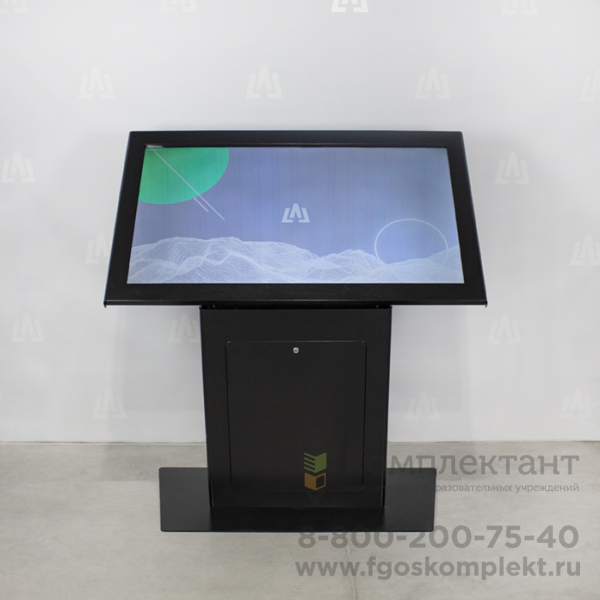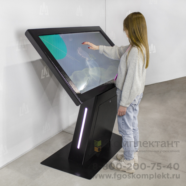 Оборудование лицензировано и включено в Реестр российской промышленной продукции Минпромторг. Стильный и надежный стол с регулировкой угла наклона дисплея. Сенсорный экран 4К может управляться 10-ю одновременными касаниями. Исполнен в стильном и антивандальном корпусе, подойдет для любых задач. Дополнен атмосферной, привлекательной подсветкой.