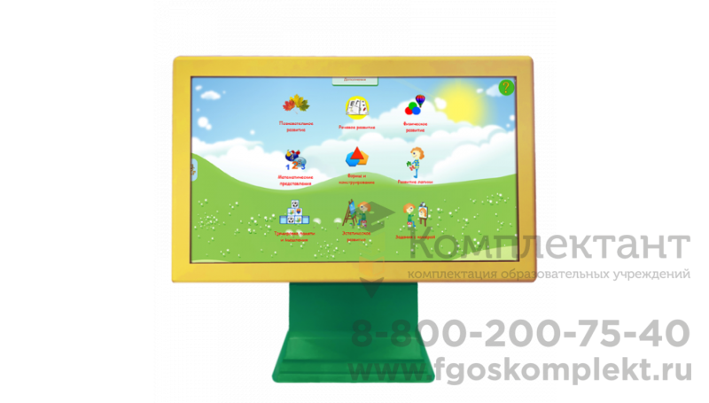 Любой ребенок от 2-х лет может самостоятельно управлять заданиями и играть, используя сенсорный мультимедийный экран.