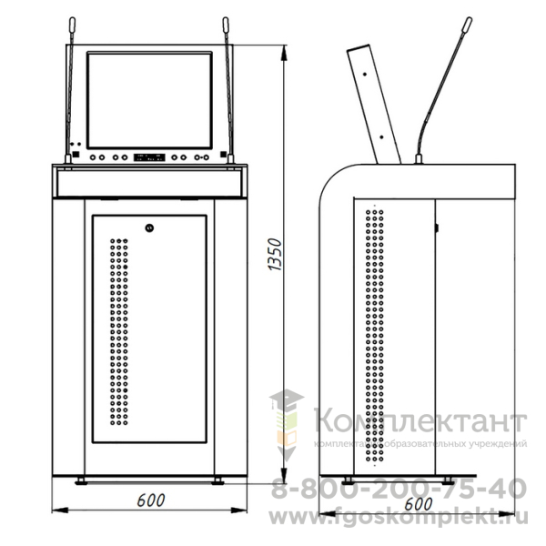 Габаритный размер (ВхШхГ) | 1350 х 600 х 600 мм |
