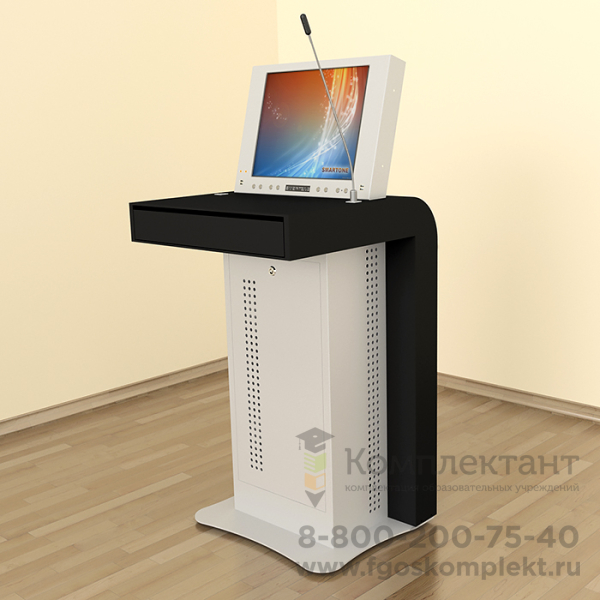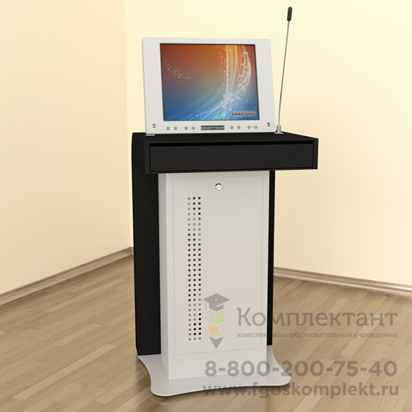 Интерактивная трибуна EGO19 является флагманом в линейке трибун Smartone. Уникальный дизайн, сочетание корпуса из 100 мм МДФ и шасси из стали, удобно расположенный корпус интерактивного планшета со встроенными кнопками управления мультимедийным оборудованием. Беспроводная клавиатура и манипулятор "мышь" располагаются на выдвижной полке, которая скрыта в корпусе трибуны.