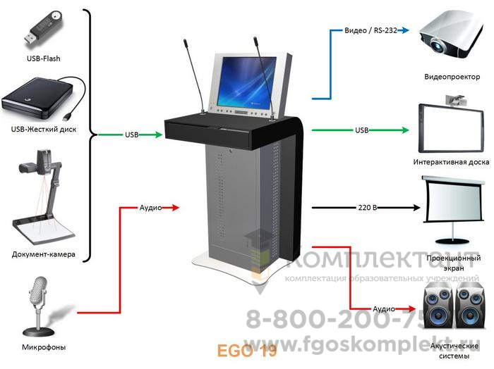 EGO19 объединяет в себе все современные достижения мультимедиа: встроенный интерактивный планшет - преподавателю нет необходимости находится у доски, чтобы донести свои мысли и идеи; предустановленное программное обеспечение для рисования и редактирования помогает доходчиво донести до обучающихся суть предмета. Многофункциональный контроллер обеспечивает оперативное управление проекционным и мультимедийным оборудованием, не отходя от трибуны. В корпусе интерактивного планшета размещены кнопки управления громкостью микрофонов, линейного входа усилителя, включения/выключения видеопроектора и управления режимами моторизованного экрана, а также существует возможность подключения наушников и 4 устройств USB. Чрезвычайно удобно для выступающего и незаметно для слушателей в зале! Микрофонная система и оборудование звукоусиления гарантирует равномерное звуковое поле в помещениях площадью до 200 м2. Все это можно получить в одном изделии - интерактивной трибуне Smartone EGO 19.