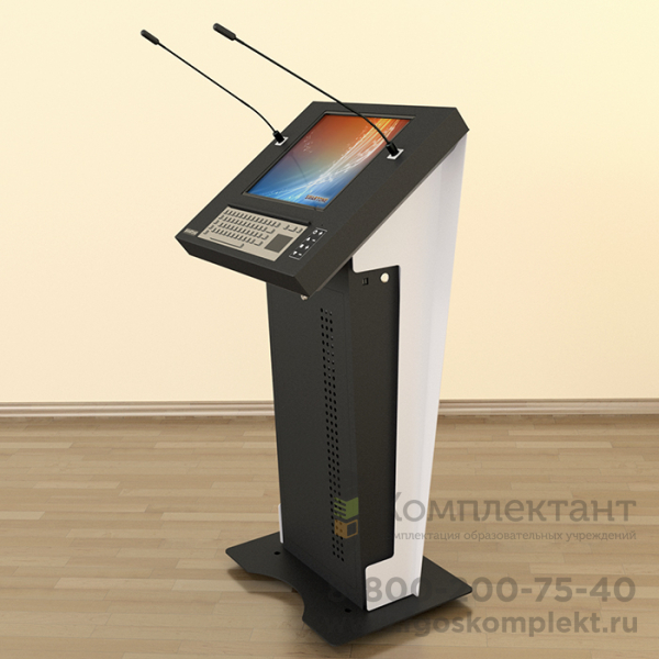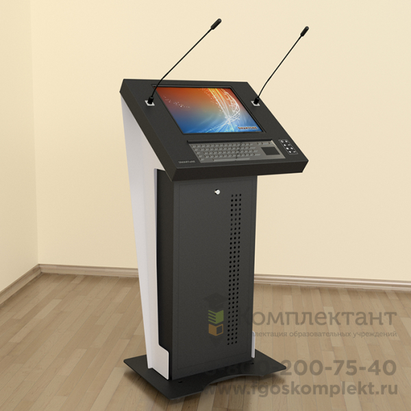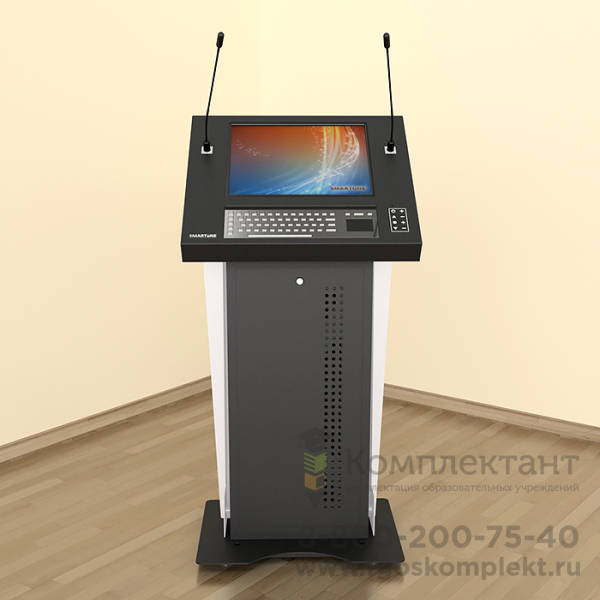 Легкий, утонченный дизайн трибуны Smartone серии PRO, выполненный в стиле Hi-Tec, и черно-белая цветовая гамма позволяют элегантно вписаться в интерьер актового зала, поточной аудитории любого института или университета.