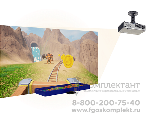 Интерактивный комплекс “Попадалкин” состоит из проектора, компьютера и датчиков. Работая вместе, эти элементы создают на стене «живые» изображения. Яркие, красочные картинки приковывают взгляд и погружают детей в игровую среду. И самое интересное - с изображениями можно взаимодействовать! Управляйте картинкой, прикасаясь к стене. Для этого используйте текстильные мячики.