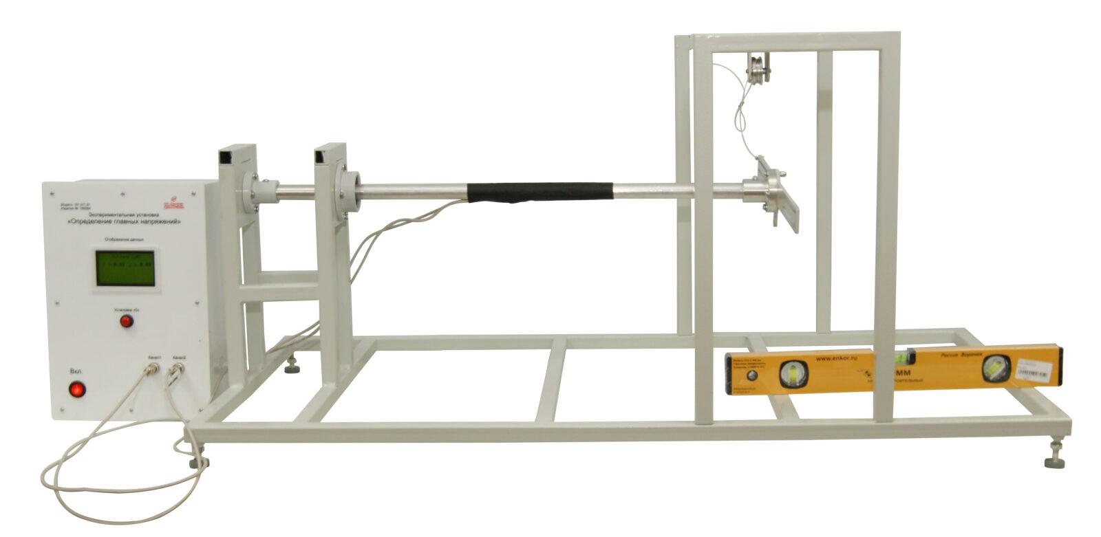 Учебная экспериментальная установка позволяет демонстрировать совместное действие изгиба и кручения тонкостенного образца, определять значение главных напряжений и положение главных площадок для различных сочетаний крутящего и изгибающего моментов.