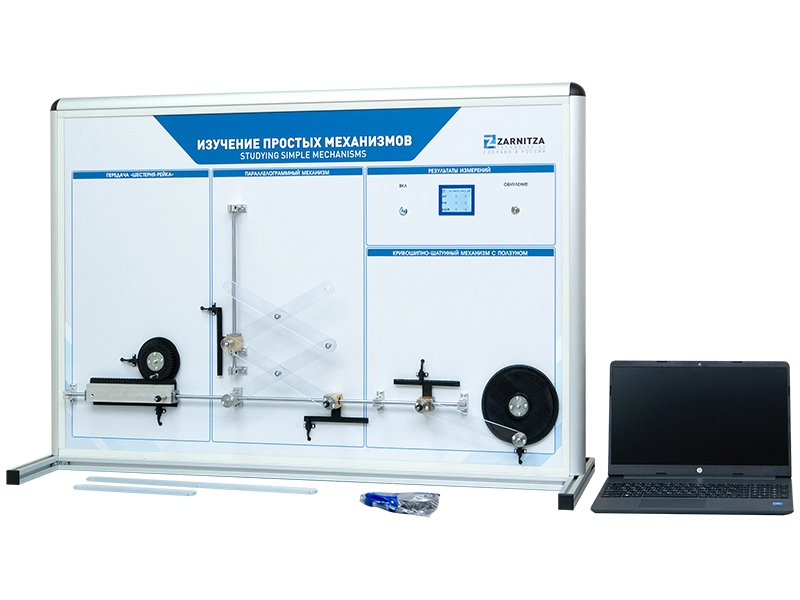 Комплект учебно-лабораторного оборудования "Изучение простых механизмов" позволяет ознакомиться на практике с кинематикой, представленной на стенде простых механизмов: