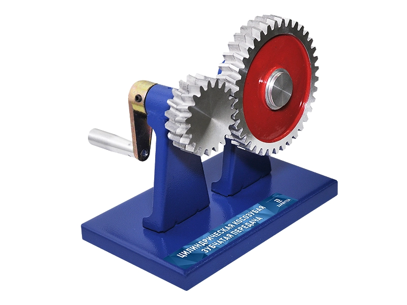 - Модель механизма на подставке "Цилиндрическая косозубая зубчатая передача".