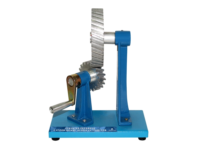 - Модель механизма на подставке "Зубчатая передача с углом между осями 45 градусов".