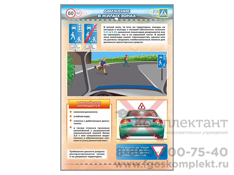Стенд представляет собой информационную панель, на которой размещены сведения о движении в жилых зонах транспортных средств.