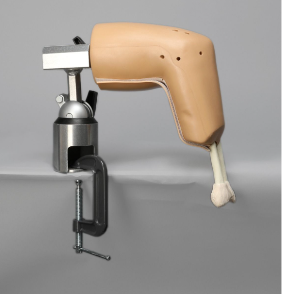 Фантом локтя для артроскопии с многоразовыми портами можно использовать для отработки диагностических и хирургических манипуляций. Модель имеет 7 готовых портов для полной визуализации суставной щели и обеспечения многократной отработки манипуляций, благодаря чему отсутствует необходимость делать новые проколы для ввода артроскопа. Сменные вставки могут имитировать эрозию хряща головки лучевой кости, перелом головки лучевой кости, наличие свободных костных отломков. Также имеется модифицированный проксимальный конец плечевой кости для фиксации в зажиме.