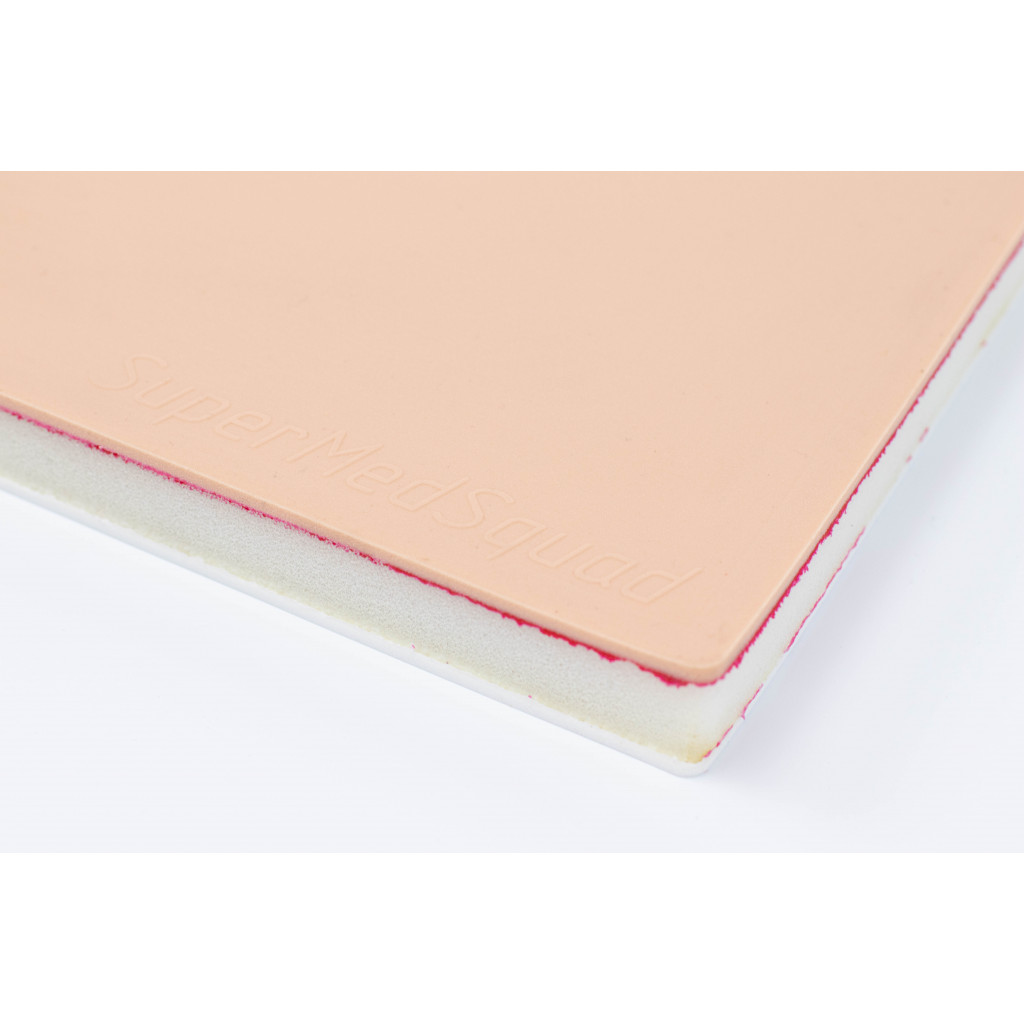 Фрагмент имитации кожных покровов c апоневрозом — учебный материал, имитирующий структуру кожи человека, включая поверхностную фасцию и глубокие слои тканей. Идеален для анатомического изучения, проведения практических занятий и самостоятельной подготовки студентов медицинских вузов.