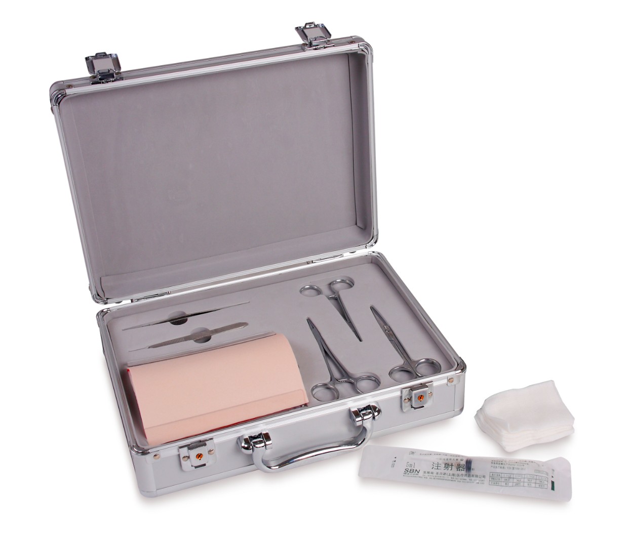 - модель укомплектована учебным набором инструментов для отработки навыков наложения и удаления швов