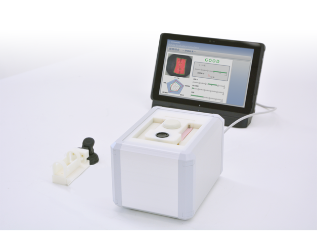 Экономичный симулятор позволит оценить технику выполнения простого узлового шва по 5 объективным параметрам. Выполняется три отдельных одинаковых шва, специальные сенсоры измеряют силу нажатия на кожу и усилие при сшивании и дают оценку. Может использоваться с любым коробочным тренажером и реальными хирургическими инструментами.