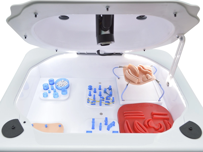 Тренажер предназначен для отработки базовых навыков проведения лапароскопических операций. Станция оснащена стойкой с сенсорным монитором, камерой с функцией фиксации и коробок для проведения процедур.