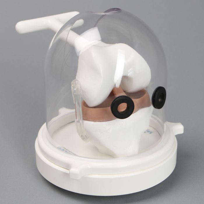Дистальный отдел бедра, проксимальный отдел большеберцовой кости с мениском и прозрачными коллатеральными связками. Крепится на внутренней стойке с прозрачной внешней поверхностью и портами. Позволяет выполнять варусные и вальгусные манипуляции, а также разгибание и сгибание от 0 до 90 градусов. Съемная большеберцовая кость с присоединенным мениском: мениск может быть изготовлен из разных материалов.