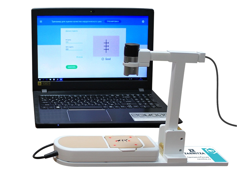 Представляет собой учебно-методический комплекс, позволяющий накладывать простой узловой хирургический швов с последующей автоматической оценкой его качества. Данный комплекс включает в себя устройство для наложения швов, ноутбук, USB камеру.